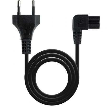 Cable de alimentación acodado con conector tipo CCE7 macho en un extremo y tipo C7 hembra en el otro.