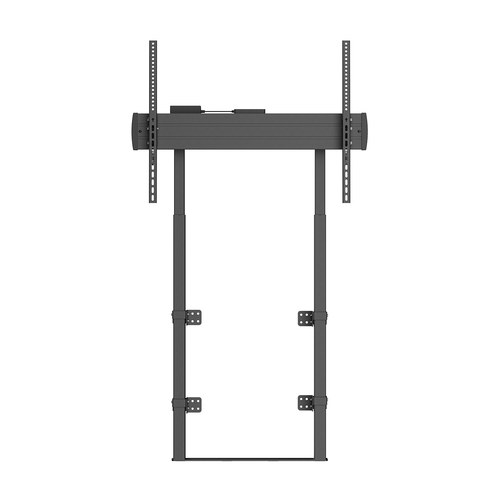 Este soporte cuenta con un sistema motorizado con control remoto por cable para ajustar la altura de la TV. Puede fijarse en la pared y en el suelo, proporcionando la máxima seguridad a la instalación. También es posible fijarlo únicamente en la pared, si se prefiere.