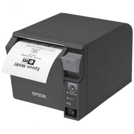 La TM-T70II es una impresora térmica fiable para recibos que puede manejarse desde la parte delantera ya que dispone de carga de papel frontal. Con un tamaño reducido y controles de botón accesibles, se puede colocar cómodamente debajo del mostrador, mientras que su rápida velocidad de impresión de 250 mm por segundo y su impresión sin márgenes te permiten atender rápidamente a los clientes, ya que no hay que cambiar los rollos de papel con tanta frecuencia.