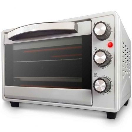 Horno eléctrico de GRUNKEL HR-23SILVER, 23 L, 1600W, 3 funciones, 60 min, 230 °C, detalles inox, bandeja y rejilla, diseño plateado.