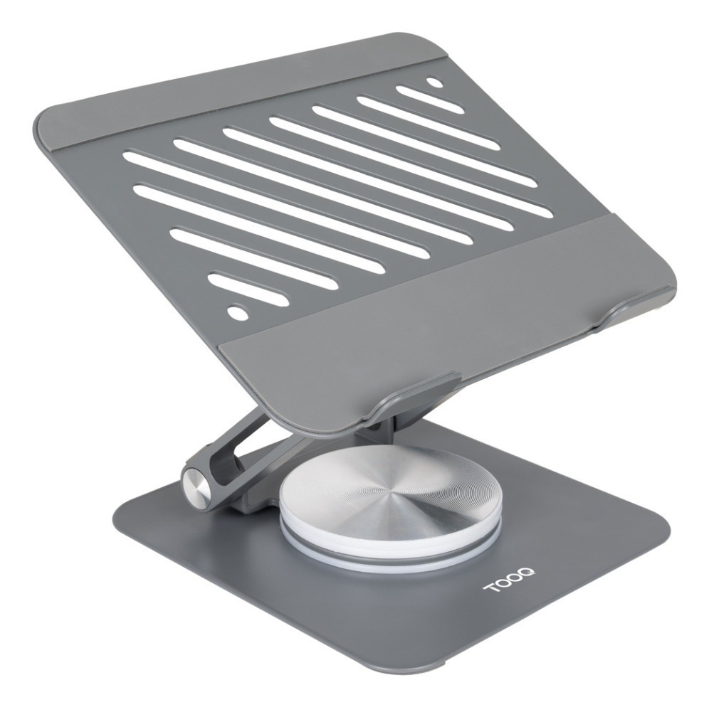 TooQ Soporte Elevador con rotación 360° y ajustable, para dispositivos de hasta 13â?, Color Gris Oscuro. Tipo: Soporte para tableta, Marca compatible: Universal, Compatibilidad: Max 13". Ancho: 166,3 mm, Profundidad: 137,8 mm, Altura: 34,4 mm