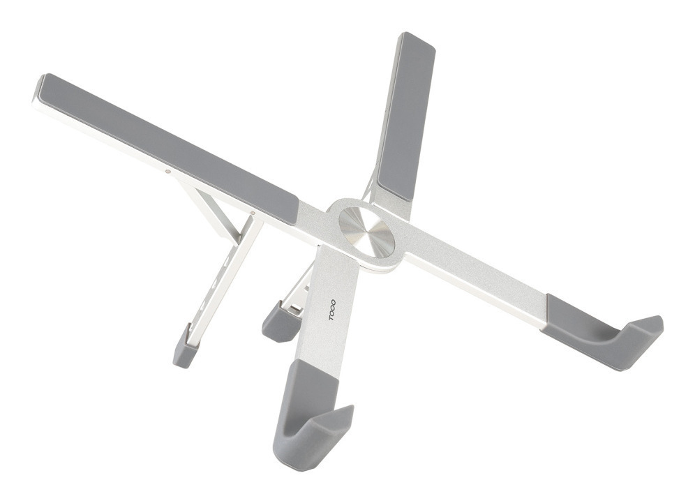 TooQ Soporte elevador plegable de aluminio para portátiles, Plata. Tipo de producto: Soporte para ordenador portátil, Color del producto: Plata, Material: Aluminio, Silicona. Ancho: 260 mm, Profundidad: 210 mm, Altura: 144 mm. Ancho del paquete: 330 mm,