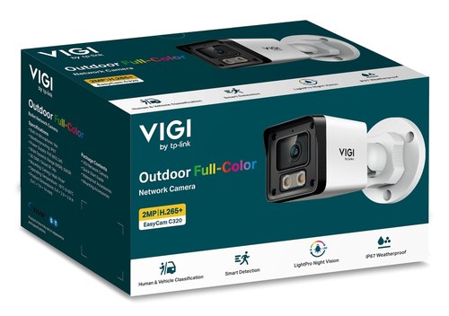TP-Link EasyCam C320. Tipo: Cámara de seguridad IP, Colocación soportada: Exterior, TecnologÃa de conectividad: Alámbrico. Tipo de montaje: Techo/Pared/Poste, Color del producto: Blanco, Factor de forma: Bala (forma). Iluminación mÃnima: 0,005 lx, Ã
