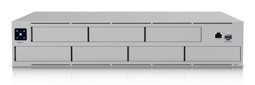Ubiquiti UNAS Pro. Tipo: NAS. Tipo de chasis: Bastidor (2U). Familia de procesador: Cortex-A, Modelo del procesador: Cortex-A57, Frecuencia del procesador: 1,7 GHz. Memoria interna: 8 GB