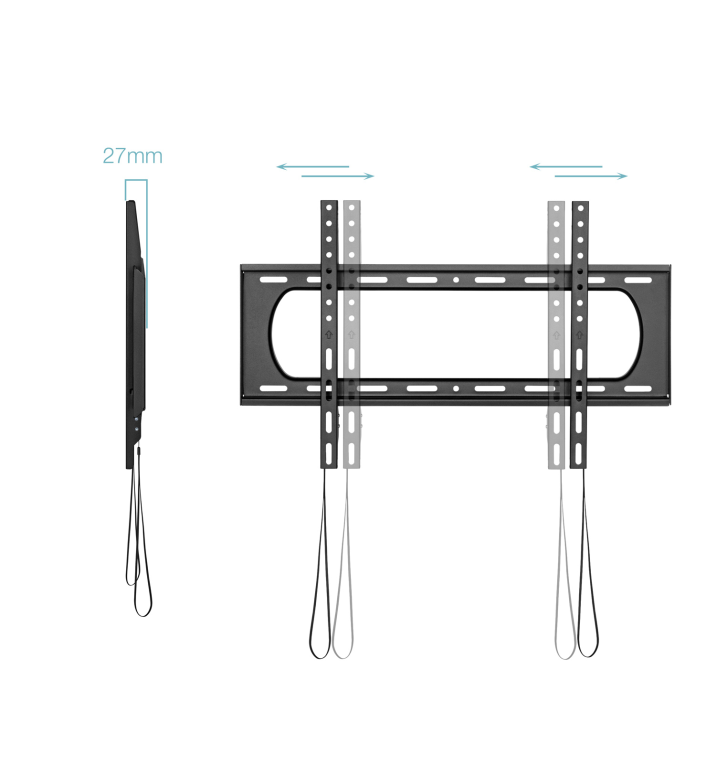 TooQ Soporte Fijo de pared para pantallas 37"- 80", Negro. Capacidad máxima de peso: 80 kg, Tamaño mÃnimo de pantalla: 94 cm (37"), Tamaño máximo de pantalla: 2,03 m (80"), Compatibilidad con interfaz de montaje (min): 50 x 50 mm, Compatibilidad con