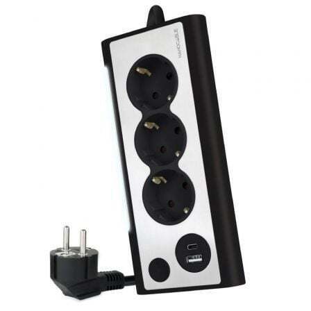 Regleta sobremesa con 3 tomas y 2 USB´s con luz