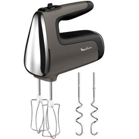 Con Moulinex, ahora es más fácil que nunca disfrutar del aroma que desprenden tus postres y otras recetas caseras al salir del horno. Es la batidora de repostería ideal. Lo que es más, Powermix Silence de Moulinex es la batidora amasadora más silenciosa y más potente,* ya que ha sido diseñada para ofrecer un rendimiento imbatible y generar menos ruido, con lo último en tecnología del silencio y un robusto motor de 600 W. Su potente motor permite mayor velocidad en la función turbo, de tal manera que ahorras tiempo en la elaboración de tus recetas. Descubre que cómodo es batir y amasar con sus excepcionales niveles de silencio, gracias a su flujo de aire optimizado y a su avanzada tecnología de amortiguación del ruido, para que disfrutes de un sólido rendimiento y de unos resultados perfectos incluso con las masas más densas. Dispone de un asa integrada de fácil agarre con un suave acabado, así como un regulador de velocidad y función turbo para batir con total facilidad. Sus dos varillas de acero inoxidable baten, mezclan y montan preparaciones ligeras a la perfección, mientras sus dos ganchos de amasar de acero inoxidable son ideales para las masas más espesas. *de Moulinex