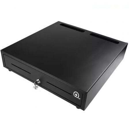 460 HQ-B - Cajón portamonedas automático 46 x 46,5 cm, 5 compartimentos para billetes, 8 gavetas para monedas, RJ12, 24V, negro