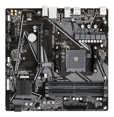 GIGABYTE B550M K Placa base - Procesadores AMD Ryzen 5000, hasta 4733 MHz DDR4, 1xPCIe 4.0 + 1xPCIe 3.0 M.2, LAN 1GbE, USB 3.2 Gen 1. Fabricante de procesador: AMD, Socket de procesador: Zócalo AM4, Procesador compatible: AMD Ryzen 3000 Series, AMD Ryzen