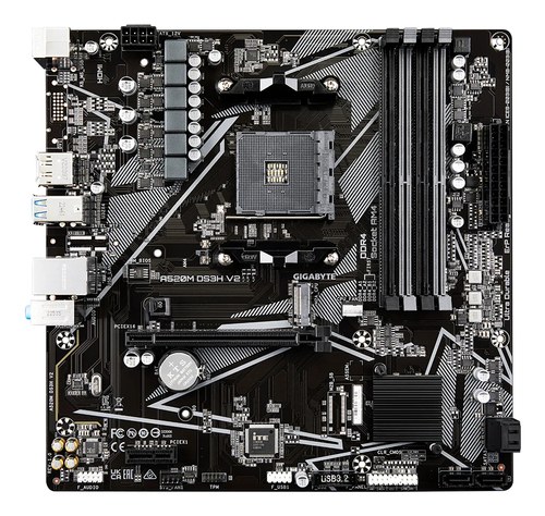 Placa base A520M DS3H V2 - Soporta CPUs AMD Ryzen serie 5000 AM4, hasta 4733 MHz DDR4 (OC), PCIe 3.0 x16, LAN GbE, USB 3.2 Gen 1