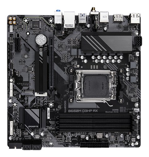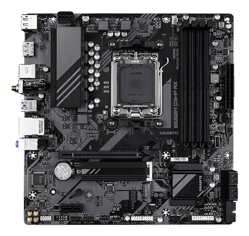 GIGABYTE B650M D3HP AX Placa base - AMD Ryzen serie 9000, VRM de 5+2+2 fases, hasta 8000 MHz DDR5 (OC), 2xPCIe 4.0 M.2, WIFI 6E, LAN 2,5 GbE, USB 3.2 Gen 1. Fabricante de procesador: AMD, Socket de procesador: Zócalo AM5, Procesador compatible: AMD Ryzen