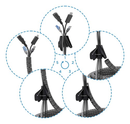 Organizador de cables en espiral con capacidad de hasta 25mm de diámetro.