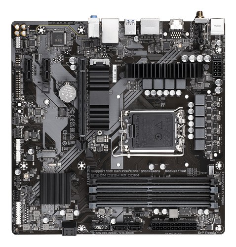 GIGABYTE B760M DS3H AX DDR4 Placa base - Soporta CPUs Intel Core de 14ª generación, VRM digital de 6+2+1 fases, hasta 5333MHz DDR4 (OC), 2xPCIe 4.0 M.2, Wi-Fi 6E, LAN de 2.5GbE, USB 3.2 Gen2. Fabricante de procesador: Intel, Socket de procesador: LGA 1700