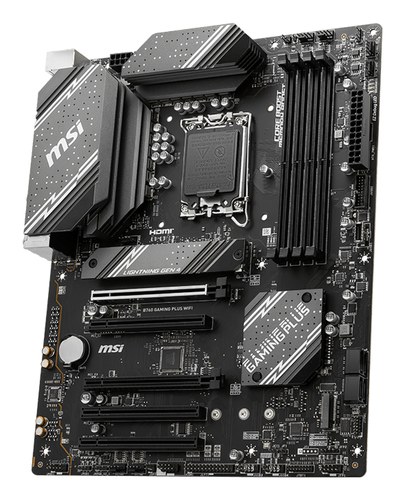 MSI B760 GAMING PLUS WIFI. Fabricante de procesador: Intel, Socket de procesador: LGA 1700, Procesador compatible: Intel® Celeron®, Intel® Pentium® Gold. tipos de memoria compatibles: DDR5-SDRAM, Memoria interna máxima: 192 GB, Tipo de ranuras de memoria: