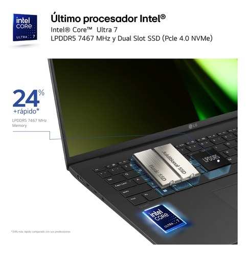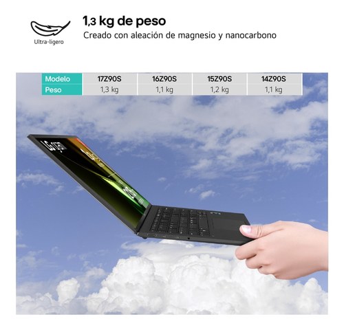 LG Gram 17Z90S. Tipo de producto: Portátil, Factor de forma: Concha. Familia de procesador: Intel Core Ultra 7, Modelo del procesador: 155H, Frecuencia del procesador: 1,4 GHz. Diagonal de la pantalla: 43,2 cm (17"), Tipo HD: WQXGA, Resolución de la panta