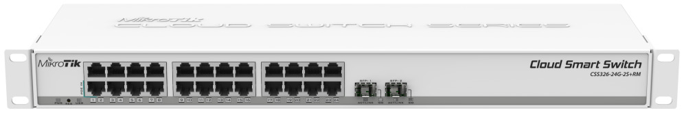 Mikrotik CSS326-24G-2S+RM. Tipo de interruptor: Gestionado. Puertos tipo básico de conmutación RJ-45 Ethernet: Gigabit Ethernet (10/100/1000), Cantidad de puertos básicos de conmutación RJ-45 Ethernet: 24. Estándares de red: IEEE 802.1Q. Conector elÃ