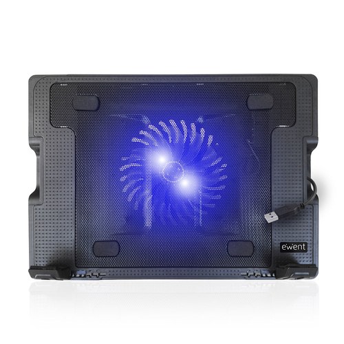 Ewent EW1258. Tamaño máximo de pantalla: 43,2 cm (17"), Número de ventiladores incluidos: 1 pieza(s), Tamaño mínimo de pantalla: 30,5 cm (12"). Color del producto: Negro, Material: ABS sintéticos, Aluminio. Interfaz de host: USB. Alimentación: USB, Voltaj