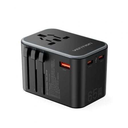 Cargador de Pared Universal Vention FJDB0/ Toma de Corriente Universal/ 2xUSB Tipo-C/ 1xUSB/ 65W