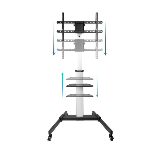 TooQ Hera Soporte de Suelo de Aluminio con Ruedas para Pantalla 37"-86". Capacidad máxima de peso: 50 kg, Tamaño mínimo de pantalla: 94 cm (37"), Tamaño máximo de pantalla: 2,18 m (86"), Compatibilidad con interfaz de montaje (min): 200 x 200 mm, Compatib
