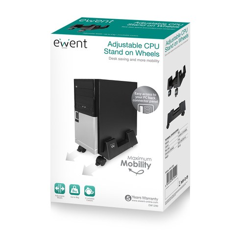 Ewent EW1290. Tipo: Carro para equipo informático, Tipo de chasis recomendado: Escritorio, Capacidad máxima de peso: 8 kg. Ancho: 340 mm, Profundidad: 380 mm, Altura: 140 mm