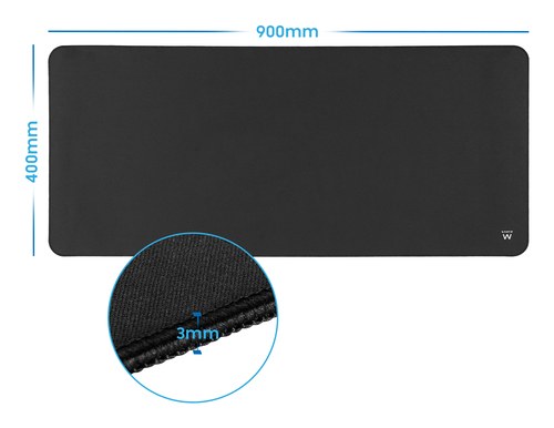Ewent EW3182. Ancho: 900 mm, Profundidad: 400 mm. Color del producto: Negro, Coloración de superficie: Monocromo, Material: Poliéster, Caucho, Base antiderrapante, Alfombrilla de ratón para juegos