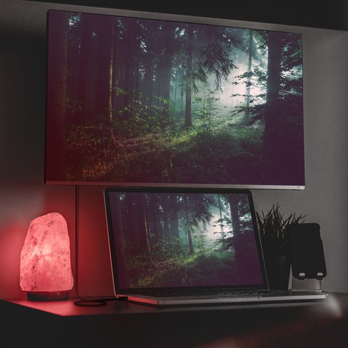 Conversor USB-C a HDMI 2.1, con conector USB-C macho en un extremo y HDMI 8K 2.1 macho en el otro