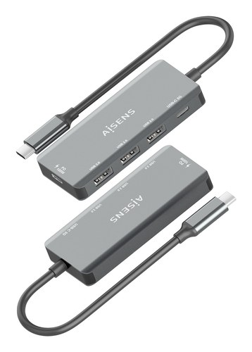 Hub USB 3.1 USB-C, USB-C/M-1xUSB-C PD 100W+1xUSB-C USB3.0/H+3xUSB-A USB2.0/H, Gris, 15cm