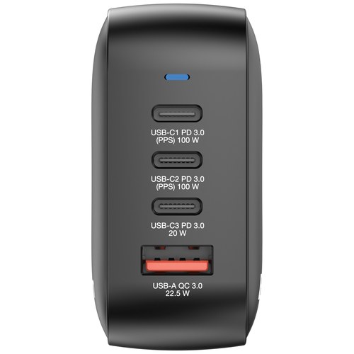 El mini cargador GaN de 100 W de Verbatim combina tres puertos USB-C® y un puerto USB-A en un diseño compacto y de bolsillo. Capaz de cargar hasta 4 dispositivos simultáneamente, dos de los puertos USB-C soportan PD 3.0 (Power Delivery) a 100W, uno soporta PD 3.0 a 20W mientras que el puerto USB-A soporta QC 3.0. Ideal para la oficina, el hogar o los viajes para alimentar su portátil, tableta, smartphone, dispositivos de juego y mucho más.
