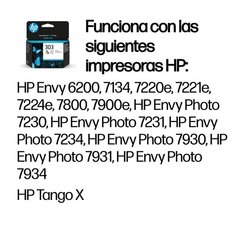 Los cartuchos de tinta HP 303 ofrecen colores auténticos para que brillen todas sus impresiones. Consigue textos definidos y unos gráficos intensos en todos tus documentos de oficina desde casa. Los cartuchos de tinta HP 303 utilizan tinta negra para brindar más tonos que permiten que tus fotografías destaquen en la página. Confía en los Cartuchos de Tinta Original HP para disfrutar de fotografías resistentes a la decoloración y al agua durante décadas.