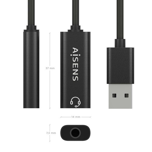Conversor USB-A a Audio 48KHz, USB-A/M-Jack 3.5/H, Negro, 10 cm