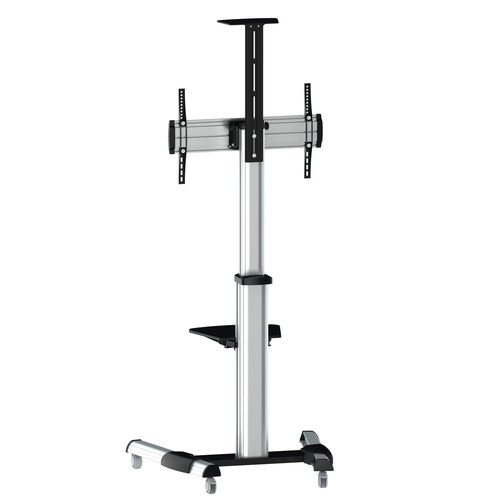AISENS® – Soporte de suelo eco con rueda, bandeja para DVD y soporte de cámara para monitor/TV de 37”-70”. Fabricado con acero de alta resistencia y pintado con pintura electrostática para un acabado perfecto.