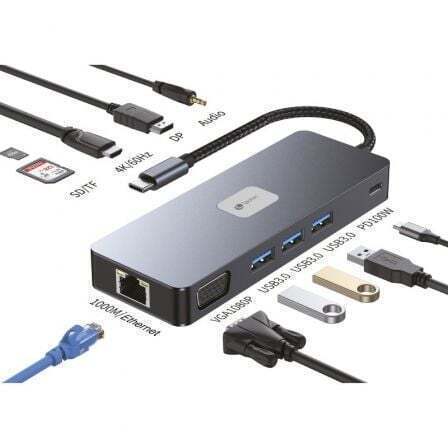 Docking USB Tipo-C Leotec LEDS03/ 3xUSB/ 1xUSB Tipo-C PD/ 1xHDMI 4K/ 1 xDisplayPort/ 1xVGA/ 1xAudio/ 1xRJ45/ 1xLector Tarjetas SD y MicroSD/ Gris