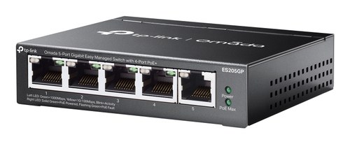 TP-Link Omada ES205G. Tipo de interruptor: Gestionado. Puertos tipo básico de conmutación RJ-45 Ethernet: Gigabit Ethernet (10/100/1000), Cantidad de puertos básicos de conmutación RJ-45 Ethernet: 5. Tabla de direcciones MAC: 8000 entradas, Capacidad de c
