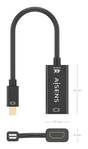 Conversor MINI DP macho en un extremo y HDMI hembra en el otro