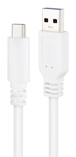 Cable USB 2.0 3A, tipo USB-C/M-A/M, Blanco, 1 m