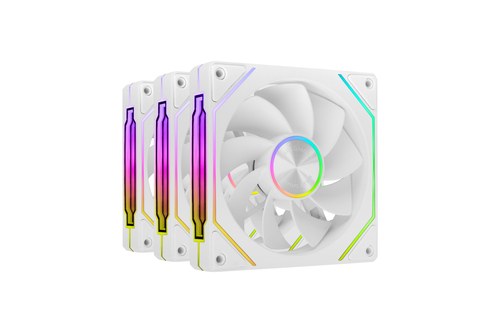 3x 120 mm, Reversed, ARGB, 800-1800 RPM, PWM, 67 CFM, 12 dB, 12 VDC, 0.12A, Blanco