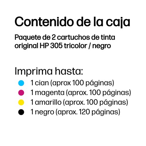 Paquete de 2 cartuchos de tinta original HP 305 tricolor / negro