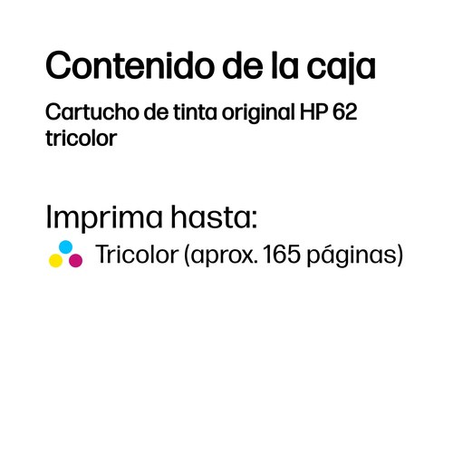 Cartucho de tinta original HP 62 tricolor