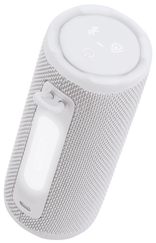 El JBL Grip puede ser lo suficientemente pequeño como para sostenerlo con una mano, pero ofrece un potente sonido JBL Pro. AI Sound Boost analiza la música en tiempo real y utiliza un algoritmo para optimizar el sonido, logrando más potencia y menos distorsión.
