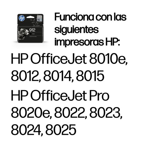 HP Cartucho de tinta Original 912 negro. Tipo de cartucho de tinta: Rendimiento estándar, Tipo de tinta negra: Tinta a base de pigmentos, Volumen de tinta negra: 8,3 ml, Colores de impresión: Negro, Cantidad por paquete: 1 pieza(s), Rendimiento de impresi