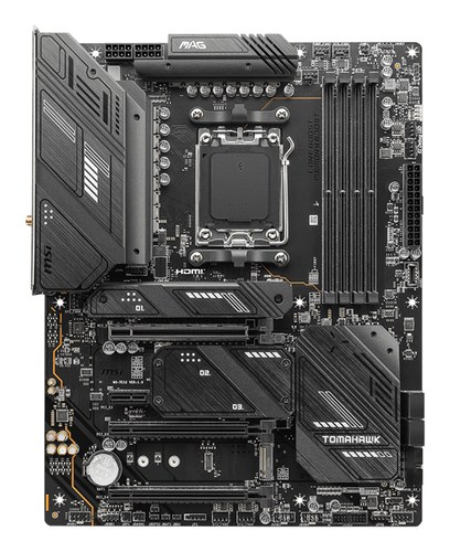 MSI MAG X670E TOMAHAWK WIFI. Fabricante de procesador: AMD, Socket de procesador: Zócalo AM5, Procesador compatible: AMD Ryzen™ 7. tipos de memoria compatibles: DDR5-SDRAM, Memoria interna máxima: 128 GB, Canales de memoria: Doble canal. Interfaces de dis
