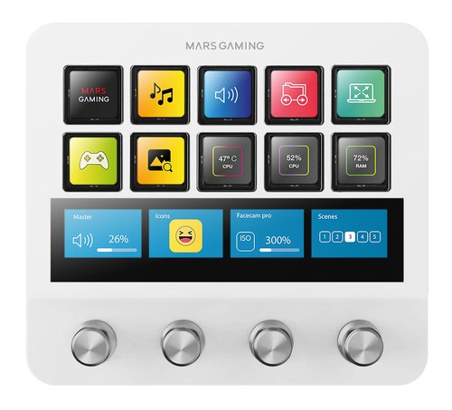 10 teclas LCD, 4 diales personalizables, LCD, 2× USB 3.0, USB-C, 5V, 0.6A, 132 x 124 x 50 mm, 387 g, Blanco