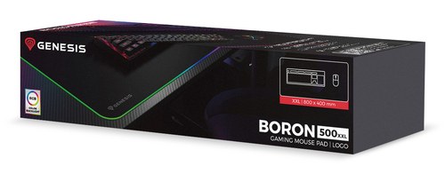 GENESIS Boron 500 XXL RGB. Ancho: 800 mm, Profundidad: 400 mm. Color del producto: Negro, Coloración de superficie: Monocromo, Material: Tela, Caucho, USB con suministro de corriente, Color de luz de fondo: Multicolor, Alfombrilla de ratón para juegos