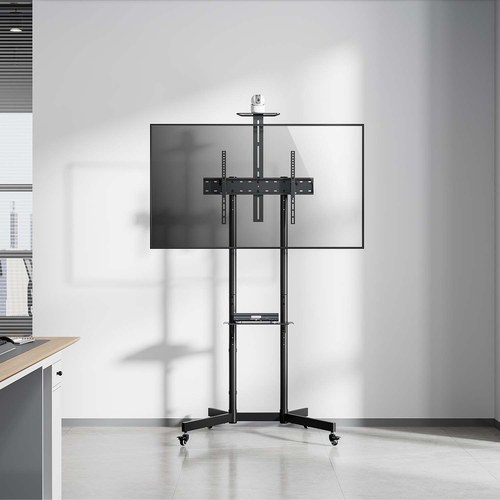 Soporte De Suelo Eco Con Rueda, Bandeja Para DVD Y Soporte De Cámara Para Monitor/TV 45kg De 37-70, Negro