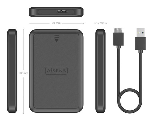 AISENS Caja externa 2.5" ASE-2519B 9.5mm SATA a USB 3.0/USB3.1 Gen1, Negro. Tipo de producto: Carcasa de disco duro/SSD. Número de unidades de almacenamiento compatibles: 1, Tamaño de la unidad de almacenamiento: 2.5", Interfaces de disco de almacenamient