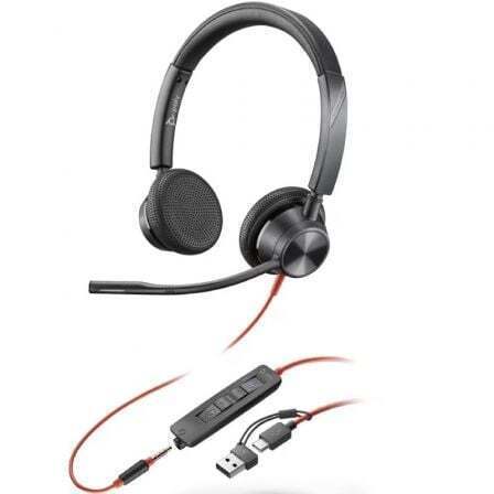 Auriculares estéreo Poly Blackwire 3325 con certificación Microsoft Teams USB-C + Conector de 3,5 mm + Adaptador USB-C/A