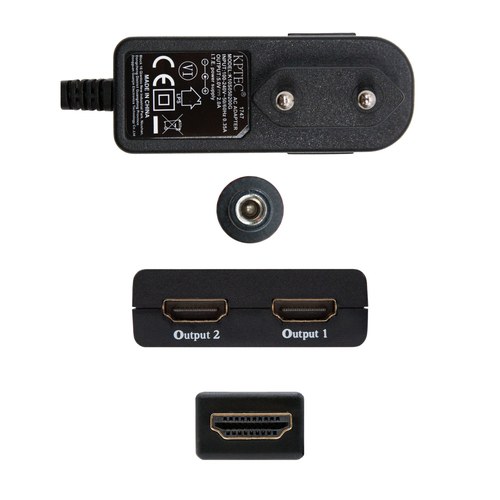 HDMI duplicador(splitter) 1X2 (una entrada, dos salidas) con pigtail (cable hdmi) 50 cm y fuente de alimentación.