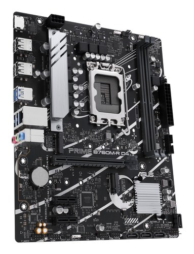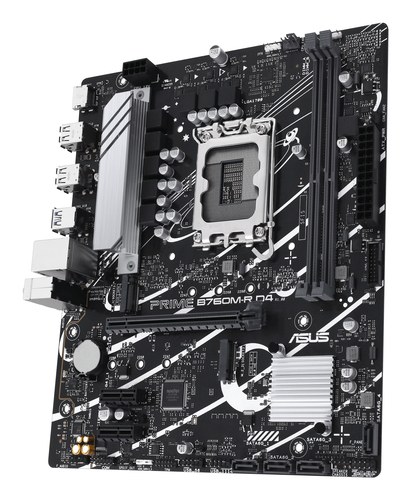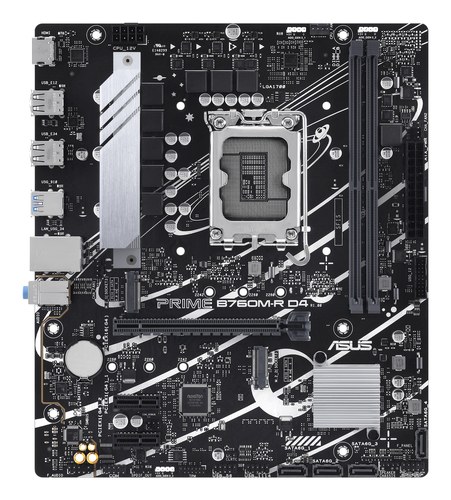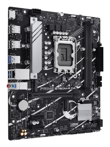 ASUS PRIME B760M-R D4 una placa base Intel® B760 LGA 1700 micro-ATX con PCIe 4.0, dos ranuras PCIe 4.0 M.2, DDR4, Realtek 2.5Gb Ethernet, HDMI™, SATA 6 Gbps, puertos USB frontales 5Gbps, Aura Sync