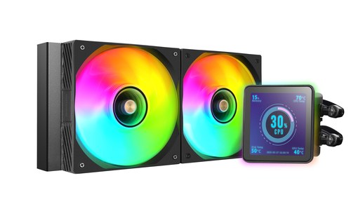 TDP 500W, Intel/AMD, ARGB, 2x 120 mm, 800-2300 RPM, 9-26 dBA, 27.2-76.6 CFM, PWM, 4" IPS, USB-C, 1189 g, Negro