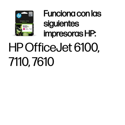 El cartucho de tinta magenta HP 933 Officejet imprime con color de calidad profesional página tras página. Dé vida a los documentos y material de marketing con una vivacidad excelente del color por un bajo coste por página y recicle sus cartuchos fácilmente.Garantice resultados fiables y de alta calidad con cada impresión. Utilice las tintas HP Officejet y características de impresionante fiabilidad para una mayor uniformidad, página tras página, libre de complicaciones. Las impresoras, las tintas y el papel HP se han diseñado y se han probado de forma conjunta para poder ofrecer unos resultados óptimos. Añada color impresionante a su impresión empresarial, obtenga vivacidad excelente del color utilizando tintas de pigmento diseñadas para la oficina. Mejore la calidad de los documentos mediante los papeles con el logotipo ColorLok®. Los colores son más brillantes para ofrecer imágenes y gráficos intensos y vivos. Imprima en color con calidad profesional a un bajo coste por página. Obtenga mejor precio con tintas individuales y los cartuchos de tinta de gran capacidad. Ahorre cuando imprima materiales de marketing en la oficina. 1La disponibilidad de las recompensas varía según el país. Para obtener más información, visite http://www.hp.com/go/learnaboutsupplies. 2Basado en pruebas internas de HP, utilizando papel con el logotipo ColorLok®. 3Basado en las predicciones del sector papelero para papeles sin ácido y tintas HP originales; datos sobre estabilidad de los colorantes a temperatura ambiente basados en sistemas similares probados según ISO 11798 e ISO 18909. 4Comparado con cartuchos de tinta magenta HP 933 Officejet. Para obtener más información, visite http://www.hp.com/go/learnaboutsupplies. 5La disponibilidad del programa varía. Actualmente, el programa HP Planet Partners de devolución y reciclaje de cartuchos HP originales está disponible en más de 50 países, territorios y regiones de Asia, Europa, Norteamérica y Sudamérica. Para obtener más información, visite http://www.hp.com/recycle.